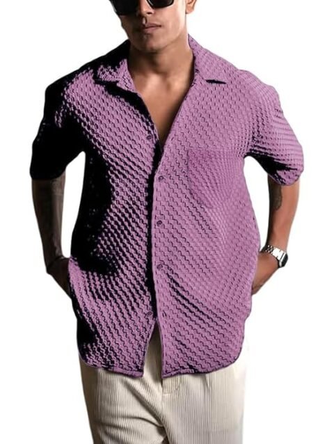 Pinkmint Bubble Textured Shirt for Men ll Half Sleeve Stylish Button Down Shirt’s ll Men’s Pocket Shirt (Pack of 1)