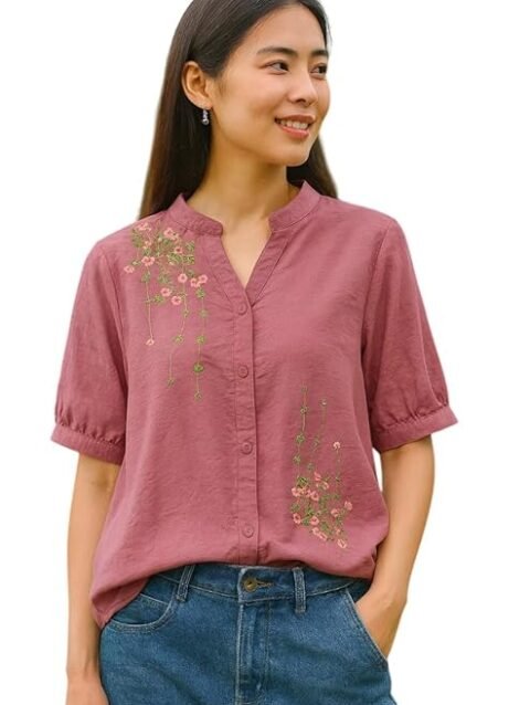 TOPLOT V-Collar Solid Crop Shirt for Women with Half Sleeves