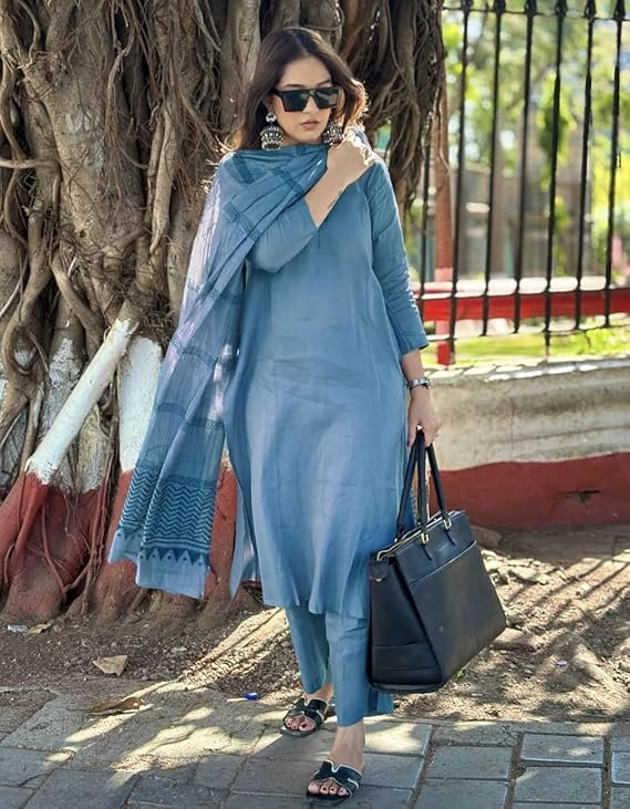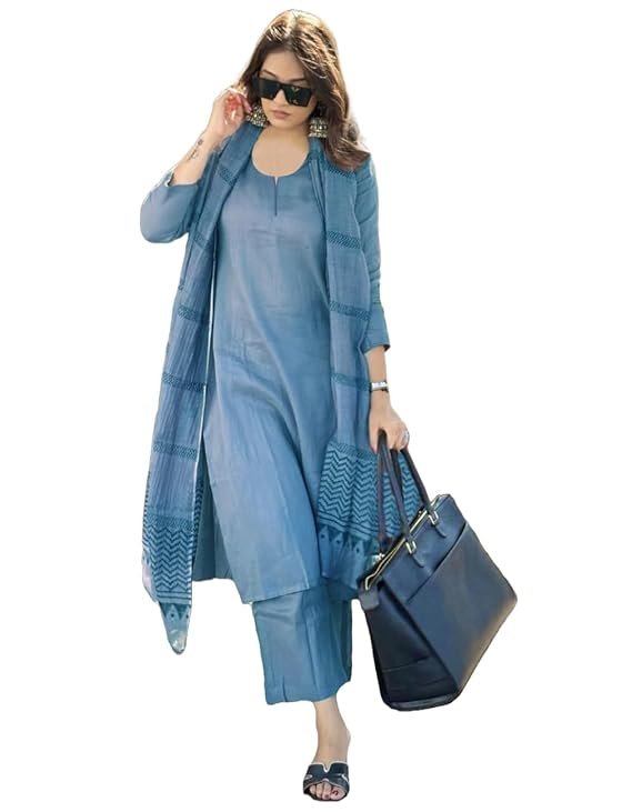 • Kurta Set Fabric: Rayon Blend (Rayon 90% Cotton 10%) || Kurta Set Color :- Light Blue