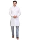 DEELMO Men’s Cotton Blend Mandarin Collar Self One Design Full Sleeve Casual Short Kurta