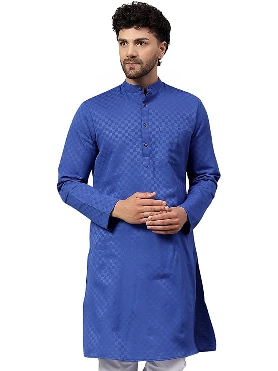 LATEST CHIKAN Men's Checkered Cotton Blend Straight Kurta