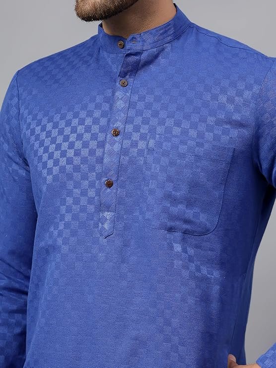 LATEST CHIKAN Men’s Checkered Cotton Blend Straight Kurta
