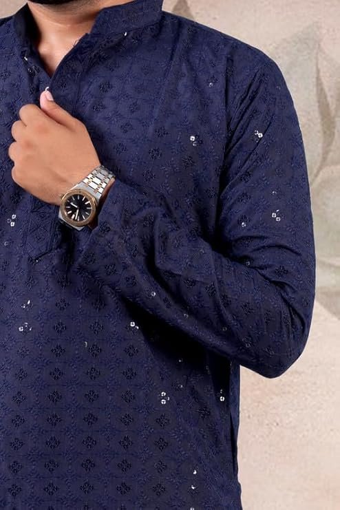 LATEST CHIKAN Men’s Cotton Regular Textured Long Kurta Full Sleeves – Casual Ethnic Wear