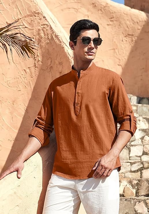 • Sleeves :- Full Sleeve With Cuff || Neck :- Stand Collar Kurta for boys || Pattern :- Kurta has a button placket & Slightly Curved.
