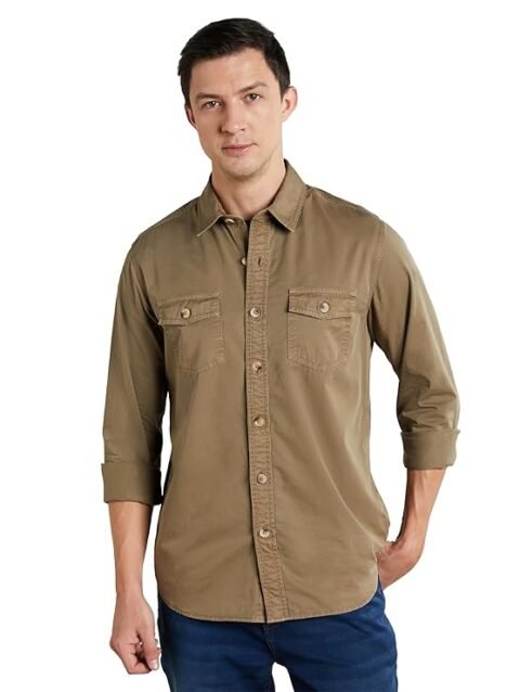 Symbol Premium Men’s Casual Washed Cotton Twill Shirt (Regular Fit)